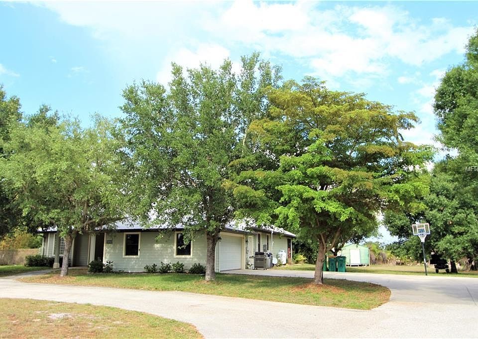 Custom 3 bedroom, 2 bath home sits on 1 3/4 acres with circular drive located in a serene rural setting. Plenty of room for family and friends with over 1900 square feet of living space, great room, dining, spacious kitchen, breakfast nook, and huge 56 feet long lanai. Great for entertaining with counter, cabinets, and sink on lanai. French doors lead to lanai with view of private fenced grounds. Open and split floor plan features color accent walls, volume ceilings, tray ceilings in dining room and master suite, decorator light and fan fixtures, recessed lights, bamboo wood flooring and blinds and window treatments throughout, and much more. Kitchen boasts newer stainless appliances including 4 door fridge, granite counters, wood cabinetry with deep drawers, pantry, gas stove, and breakfast bar. Master suite has tray ceiling with walk through closet to private en suite bath with jetted tub, shower, and dual sink vanities. Other features include oversized side load garage, dedicated laundry room with overhead cabinets, newer washer and dryer and wall to wall pantry, new tankless gas hot water heater, new storm shutters and hurricane code garage door, metal roof, and storage building. Lots of room for your boat or RV with oversized drive and separate parking pad. Quiet rural neighborhood yet all amenities nearby including historic downtown Punta Gorda, popular Fishermen's Village, local beaches, and public parks and boat ramps. And Interstate 75 nearby. This home has the best of all worlds!