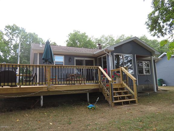Updated ranch with 180' on the St. Joseph River. Nice location on the river with 3 lots and great views. Home features hardwood floors, updated large kitchen with center island, plenty of cabinets and counter space. Remodeled bathroom with large tiled shower. Large living room, sunny reading nook and 2 nice sized bedrooms. Open floor plan and large windows for plenty of natural light. New deck and detached oversized 2 car garage. Full basement with walk up steps to exterior. Home includes newer stainless steel appliances - stove, refrigerator, dishwasher and microwave. Move in condition!