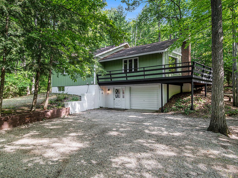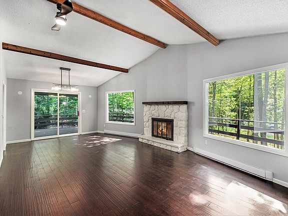 Introducing a stunning gem nestled in the woods of Michaywe. This enchanting abode boasts 4 bedrooms and 3 baths, offering ample space for your every need. Step inside to be greeted by cathedral ceilings, rich wood floors, and a wood-burning fireplace that invites cozy evenings spent in its warm embrace. Discover spacious bedrooms adorned with walk-in closets. Prepare yourself for a home that effortlessly blends style with functionality, creating an unparalleled living experience.