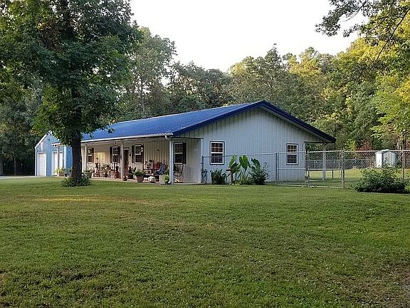 Located 6 miles south of Locust Grove. 1640 square foot home for sale; with 30x30 foot shop and 10.75 acres. House and shop built in 2006. Creek runs through property and behind house. Nicely shaded front yard. Large covered porches full length of house on front and back with guttering. Rural Water since March 2017 with access to well water. Chain link fence around back yard. House is total electric. 3 bedrooms, 2 bathrooms, utility room, open floor plan living room, dining room, and kitchen. Wood stove. Shop has two garage bays and a 16x10 ft loft with staircase access for storage. 2 acre area fenced with a small 10' x 10' barn. House interior has been updated with new cabinetry, recycled glass countertops, faucets and lighting. New HVAC in 2017. In ground storm cellar on property.