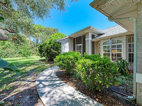 " Nicely wooded, secluded setting, a (2) mile easy bike ride to Manasota Beach, spacious custom home by Home Masters, many upgrades, 3 car garage, extra large lot. wood laminate, ceiling fans, tile in bonus room & 2 bedrooms, There is a huge pantry in the laundry room along with a built in ironing board, and lots of storage space including pull down stairs and flooring in the attic. The view is a greenbelt preserve area adding to the secluded and private feel of this wonderful home, enjoy the view from large screened porch.