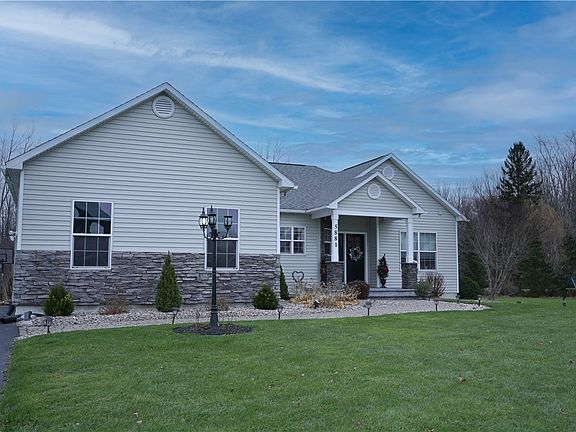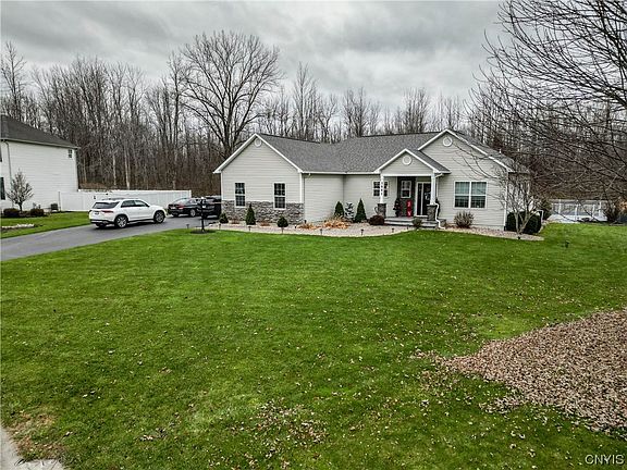 Welcome to your dream home! This stunning 4-bedroom, 2.5 bathroom oasis is a haven of luxry and comfort, conveniently located just steps away from Muskrat Bay on picturesque Oneida Lake. Situated in a serene neighborhood, this residence boasts an array of desirable features. As you step inside, you are greeted by the grandeur of the vaulted ceilings in the great room, creating an airy and spacious ambiance that is perfect for both entertainment and relaxation. Natural light pours in through the expansive windows, accenuating the beauty of this space. The heart of this home is the beutifully appointed kitchen, complete with new modern appliances, ample counter space, and a convenient center island. The master bedroom suite is a retreat in itself, offering tranquility and privacy along with its own master bathroom and walk in closet. A second full bathroom serves the other 2 bedrooms, that come with California closets in both. This home also comes with a dedicated home office. Downstairs, you will be amazed by the large family room equipped with wet bar and a brand-new half bathroom. This home also features a home gym and a 4th bedroom. Don't miss out on making this your forever home