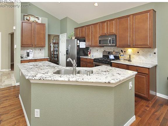 Gorgeous home on greenbelt in the popular Summerfields at Timnath Ranch neighborhood. Bright & open floor plan with high ceilings, walnut wood flooring, & main floor master! Kitchen boasts maple cabinets, large island, slab granite & stainless appliances. Large windows showcase gorgeous snow-capped mountain views. Custom screened porch to enjoy the outdoors. The landscaped yard is a gardeners delight with raised stone flowerbeds. New Neighborhood pool with slide, clubhouse & work-out facility.