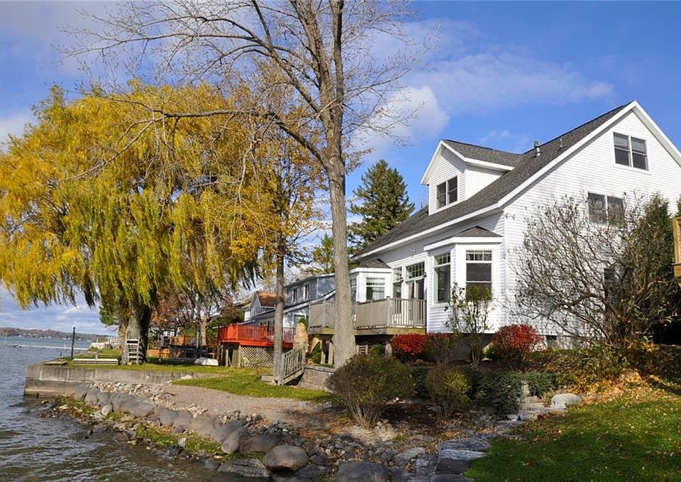 Excellent Opportunity to be on Cayuga Lake quickly! Custom-built in 2007, three living levels in this immaculately maintained year-round lake front property with over 3500 sq. ft. & oversized 2 car garage. On Cayuga Lake's Eastside level frontage, huge back yard, & municipal water/sewer. Easy to love floor plan w/cozy spaces to entertain multiple generations (yes has internet/cable)bedrooms on all levels - Main Level Master Suite. Tall coffered ceiling & a wall of windows over looking the lake. Fabulous storage throughout, & 2nd lvl storage over garage (28' x 28') Plenty of parking. Easy access to the lake and quick commute to ROC-SYR-GEN-AUB-ITH!