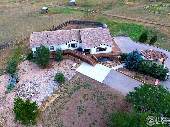 Outstanding Farm/RanchProperty on 35 acres minutes from Ft.Collins! Beautifully remodeled! 3 BDRMS, 3 BATHS, + OFFICE + 1 ROOM IN BASEMENT. Wonderful views, your dream kitchen w/ granite countertops, wood floors, 2 fireplaces, walkout basement w/ French doors, new carpet, 3-car garage, Pergola w/ fireplace, storage cabin, Loafing sheds, 36' x 48' shop w/ Tack Room, 4 stall shed w/ hay storage. This is a "must see to appreciate"! Poudre School District! Room in basement has outside entrance.