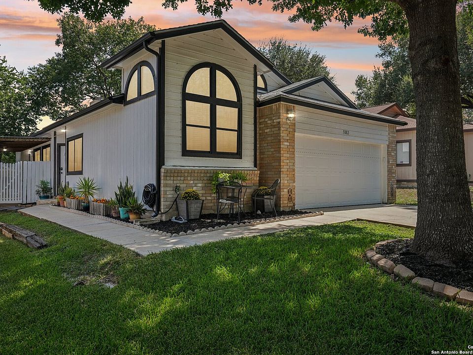 Our lender partner is offering to cover the entire downpayment and closing costs, up to $17,500, with competitive rates available in the 5% range. This inviting, move-in ready home features three bedrooms and two bathrooms, with soaring ceilings and a cozy fireplace in the living room. The thoughtful split master layout includes a spacious, unique master bathroom for added comfort. The interior boasts tile and vinyl flooring throughout-no carpet-for easy maintenance and modern appeal. Outside, the backyard is perfect for gatherings, offering a large covered porch and turf for effortless upkeep. The property also conveys with a playscape and refrigerator, adding to its convenience and charm.
