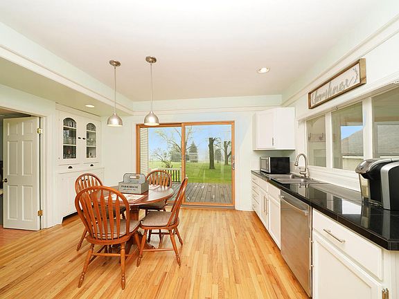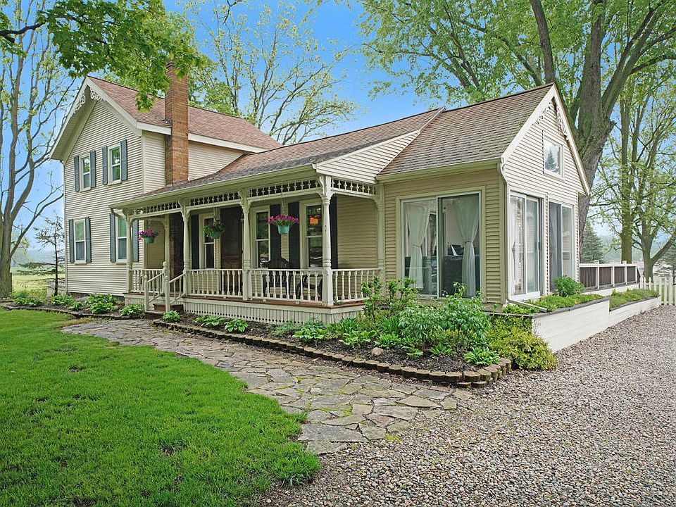 This beautifully remodeled two story farmhouse has 3 bedrooms, 2 full bathrooms and is nestled on a little over two acres. The spacious backyard offers apples, pears, cherries and grapes. It has a detached two stall garage with new garage doors/openers and two story hip roof barn with water, stalls and space for pastures. This home is completely updated yet exudes loads of farmhouse character! Both bathrooms have been renovated. The kitchen is also updated with additional kitchen cabinets, stainless steel appliances, granite tile counters and solid hardwood flooring throughout.This home also features a high efficiency front load washer and dryer, a walk in pantry and a new high efficiency furnace. There is also an electric furnace on the upper level complete with central air. Shaded by mature maple trees, a wraparound deck off of the kitchen makes entertaining easy and the charming front porch with its large antique, beveled glass door sets a welcoming, farmhouse tone.