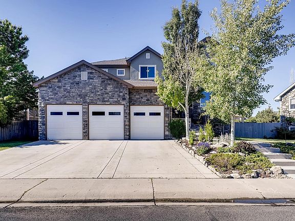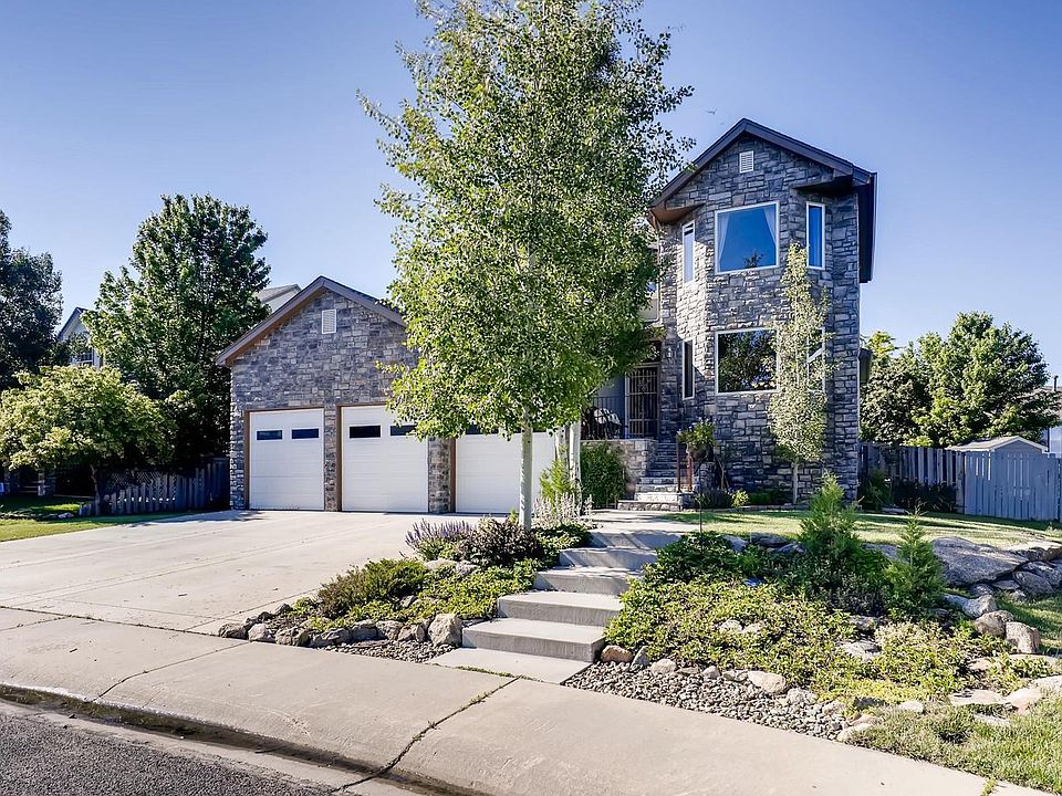 This well planned, CUSTOM BUILT home features 5 BR and 3BA UPSTAIRS! Large spacious rooms, main floor office, half bath on main level, custom tiled floors, gourmet commercial style kitchen, a full unfinished garden level walkout basement with 9ft ceilings, HUGE over-sized 4 car garage, RV or Boat storage behind fence, large composite deck, concrete patio, mature landscaping AND an OWNED 40K solar system (110% power generation). This house features 10" concrete wall construction with 1.5x the normal insulation values and is SUPER QUIET inside. This castle like home is located on a peaceful cul-de-sac, just steps from open space and in view of EAST Neighborhood Park in No-Name Creek, a highly sought after, NO HOA neighborhood. This home offers incredible views of the privately-owned Lake View Reservoir, as well as spectacular Mountain views for multiple areas of the home. The in-floor heating system and owned solar system in the home reduces the electric bill to only $17/month!