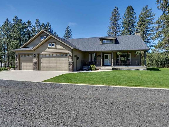 Lovely and peaceful 5 acre retreat. This home lovingly built in 2008 has a 3,400 sqft open floor plan with 4 beds and 3 baths with vaulted ceilings and warm hardwood floors. You’ll love the large master suite, fully finished lower level with a huge family area and a relaxing covered deck. The home backs to a secluded wooded area for privacy. The newly extended shop is a 48X57 with a 200amp service, loft, and it’s plumbed for a bath. Can be a great horse setup. On public water and Avista gas Too!
