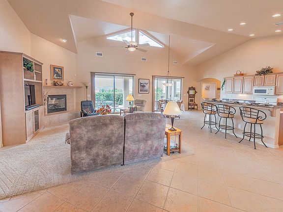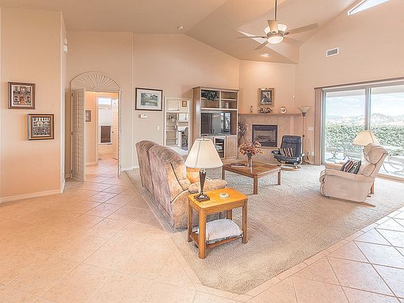 Perfect positioning is everything with this beautiful single level home in Pinion Oaks nestled on a Cul De Sac with towering views of the dells and beyond! Vaulted ceilings with a large great room concept, light and brightly upgraded kitchen with granite and stainless appliances. This split floor-plan offers total privacy for family and guests. Roomy master suite with spacious master bath and walk in shower that provides handicap access. Big 3 car garage has room for storage, cars and or a workshop. The driveway is curved and at a small up-slope but the lot has room for R/V Parking. Please call for more details on R/V Parking before taking your clients out, if their criteria is R/V.