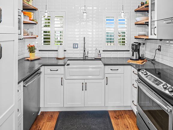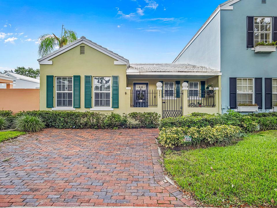 Welcome to Charleston Place, a charming community inspired by the historic row homes and courtyards of Charleston, South Carolina. This close-knit neighborhood offers residents access to intimate parks, gazebos and walkways adorned with bougainvillea-covered arches. Enjoy the luxury of four community pools accessible from private courtyards.Designed by renowned architects Andres Duany and Elizabeth Plater-Zyberk, Charleston Place stands out with its unique ''southern charm.'' The redone farmhouse kitchen with updated appliances and a traditional farmhouse sink sets the tone. Updated bathrooms, floors, lighting, and crown molding finish the look. Step outside, sit on your covered front porch, and enjoy Charleston Place living, or relax in your private back garden patio.