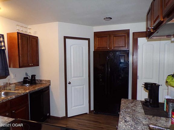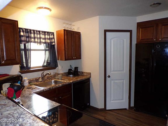 Built new 2021 Nice unique home nestled on 3.27 acres in South Joplin. Kitchen with pantry and wrap around eat at bar. Vinyl plank floors throughout. Wrap around front Deck. electronic dog door with collars. Walk out unfinished basement with 2 car drive under garage.