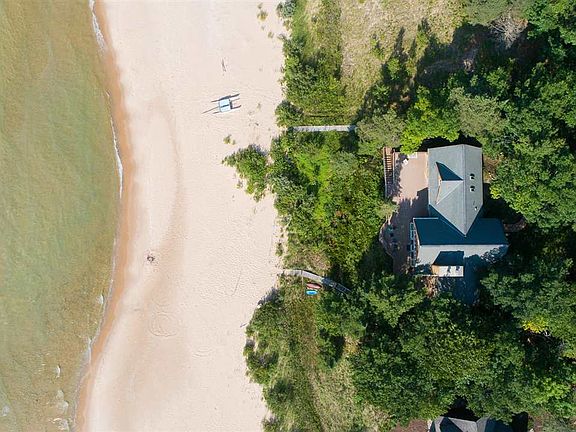 OnPaWe Lodge. If you are looking for an incredible custom designed year-round retreat on the pristine shores of Lake Michigan, here you go Glorious sunsets & sunrise. Open floor plan with a Master en suite wing complete with a stone fireplace & private entry to your deck with a view. Floor to ceiling stone fireplace will keep you warm and cozy winter evenings. Bedroom wing with 4 bedrooms, 2 full baths and a loft upstairs that overlooks the great room plus a large separate bunk room. Enjoy your large deck with 1500' of Trex decking to take it all in. Lower-Level entry allows easy storage for your snowmobilers and water toys. The 30 x 32 detached garage allows storage for additional toys. This gorgeous home is located in Cross Village, 25 minutes to the Bridge & 20 minutes to Harbor Springs.