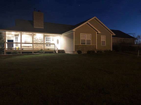 Complete privacy & quiet country living. Well built 5 bed/3 full bath w/walk-out basement on ~2.5 acres. Main floor features open floor plan w/custom hardwood floors, Large living/dining room area w/wood-burning fireplace and beautiful kitchen w/large island. Natural light enters through the multiple windows along the back wall. Spacious master suite w/generous walk-in closet & French doors that lead to wrap around deck & onsuite includes a separate jetted tub, double head shower & double bowl vanity. 2 additional bedrooms & laundry area are also located on the main floor. Lower level includes large living/entertainment space w/wood-burning stove, walk out doors to second driveway, storage area, full bath & two additional bedrooms that just need a few finishing touches. Attached oversized 2 car garage & separate 2 car detached garage along w/2 storage sheds. Home provides peaceful relaxation & enjoyment in the backyard & beautiful sunrise/sunsets can be seen from the wrap around deck