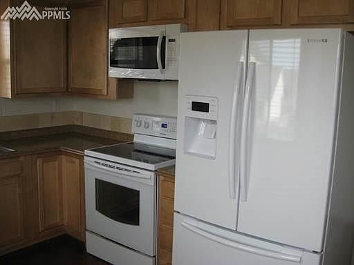 Recently updated home w/lots of new features. Vaulted ceiling and skylights provide an open and bright environment. Renovated kitchen with newer cabinetry, countertop, backsplash and appliances. New neutral carpeting to be installed before move in. Fenced backyard with view of Pikes Peak. Dog run. Home is located in a superb location, close to shopping, schools, parks, rec centers, military bases and the airport.
