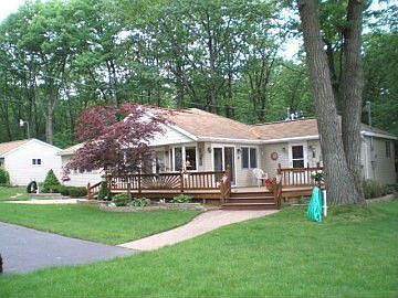 Waterfront Family Get-Away or Resort Immaculate year around ranch home with 1300 sq. ft, maintenance free vinyl siding, 2 bedroom, 2 bath, open living, kitchen, dining area. Dining area overlooking lakeside opens onto full deck. Detached 3 car garage for all the boat, toys or storage. Wooded lot is 100 x 800 and has a blacktop driveway. Two seasonal cottages, immaculate condition each has 2 bedrooms, approx 600 sq. ft, 1 bath & a fieldstone fireplace. At waters edge is the 14.5 x 28 boathouse with new steel roof. Dock, hoist & pontoon are included.Readmore.com# 864