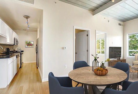 Beautiful, natural light filled and convenient 1BR condo, with included on-site reserved parking space. 10ft ceilings throughout. Bamboo wood flooring and open concept living and dining area. Stainless steel appliance suite includes dishwasher and black stone countertops in the kitchen. The living room features large windows facing north and northwest. Large carpeted bedroom with custom walk-in-closet and window. The bathroom features Italian marble, a soaking tub and a wide vanity. There is a stacked washer/dryer in the unit. Building has a secure lobby with a locked and coded package concierge, elevator and rooftop common area. On-site, private parking space included. Owner pays for water. Renter responsible for gas and electric. Security deposit due at signing. Credit references and proof of income required. No smoking allowed.