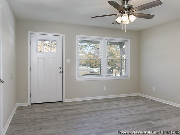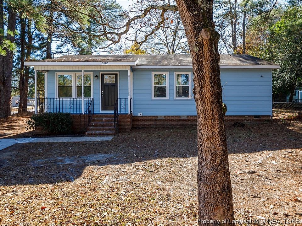 Delightful remodel sure to please! Located on a big corner lot convenient to downtown, the mall, and Fort Liberty. New, new, new! Renovation includes new driveway, flooring, paint, fixtures, kitchen, both bathrooms, doors, vapor barrier, and 12 windows! Front porch and fenced in back yard with a small patio. Lots of yard to enjoy the outdoors and relax or entertain. SS appliances and LVP flooring in the kitchen. Attractive tile work above the tub in the full bathroom. Pretty vanities in both bathrooms. Would make an excellent starter home or rental investment property. Schedule a showing today to see all of this in person!
