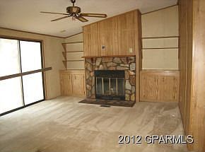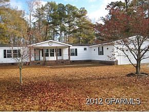 Spacious, 3 bedroom, 2.5 bath doublewide mobile home with covered front porch, double attached garage, fireplace on large country lot. Home needs some TLC and repairs.