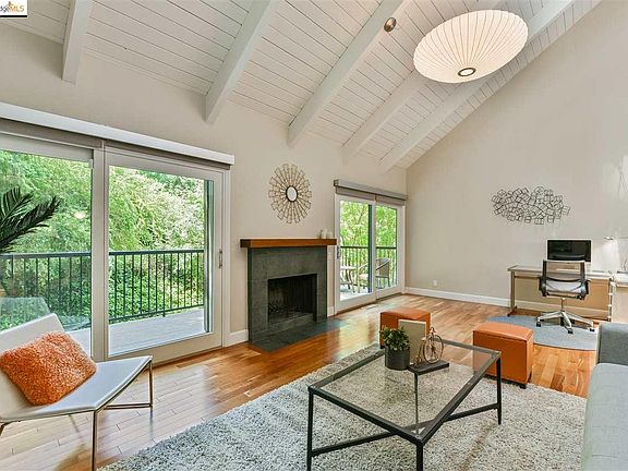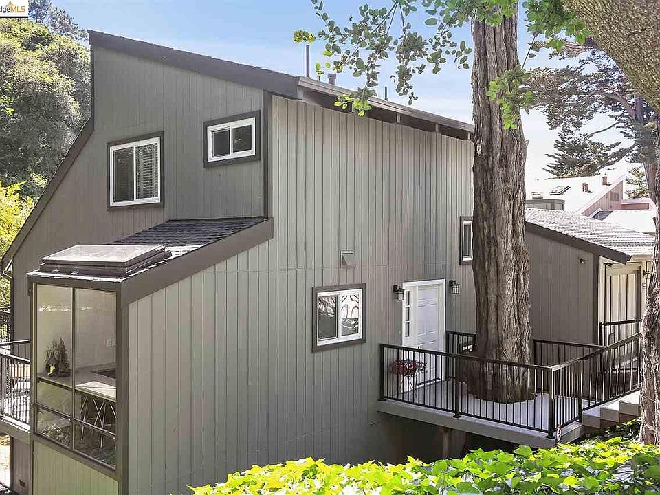 Stylish tri-level 3+ bedroom and 2.5 bathroom contemporary in a bucolic Montclair Estates location. The open floor plan of the main floor's kitchen-dining area and living room face the beautiful outlook onto the rear gardens and creek. The updated gourmet kitchen has a sunny deck, perfect for morning coffee. The airy updated Master Suite occupies the entirety of the third floor and is illuminated by skylights and banks of windows. On the lower level you will find two more bedrooms, a family room and the laundry room. The downstairs family room provides easy access to the rear gardens and garden decks. Each closet throughout the house has been custom fitted with individual closet systems. This house is conveniently located close to a San Francisco Express bus stop, as well as other transit options. The Montclair Village shops, cafes, and restaurants are not far from this perfect location.