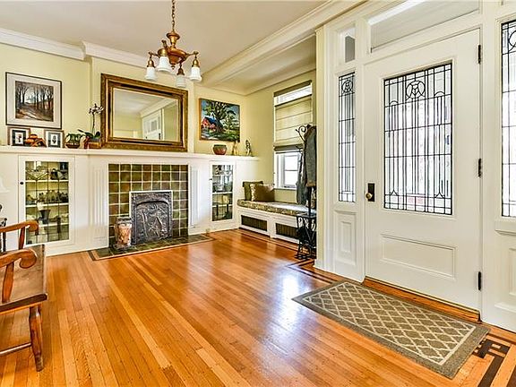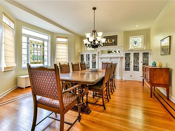 Live in the heart of Squirrel Hill in this wonderful Arts and Crafts home. This beautiful home features lovely leaded and stain glass windows through out the first and second floor. Beautiful refinished hardwood floors grace the entry and first floor. Gas log fireplace in the large living room. Large dining room with lovely built ins. The large eat in kitchen is ready for a redo. First floor powder room. The second floor features 4 bedrooms and two full baths. Great to convert one to an oversize master suite in the future. Large third floor with two bedrooms with an updated shared bathroom. New boiler to be installed. Central air. Large fenced in back and side yard. Large finished lower level family room with fireplace. This seller has not used it, but previously used as a log burner. Walk one block to Starbucks! Walking distance to places of worship, restaurants, bus lines and shops. High on the walkability score.