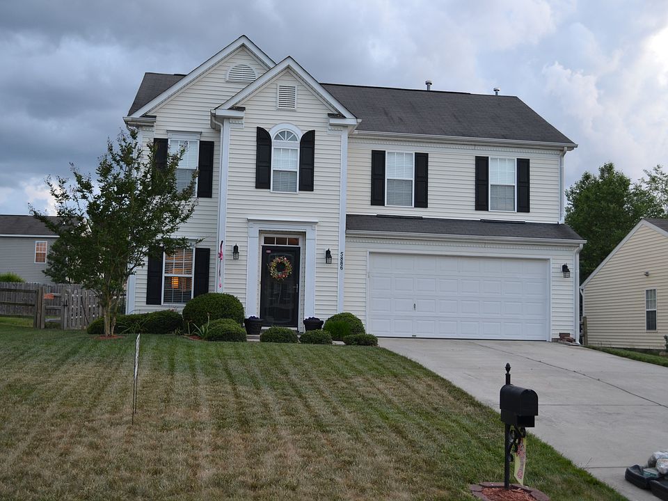 New garage door and opener! Enter this house with laminate flooring through the foyer, living, and dining rooms. Living room also has gas log fireplace. Kitchen has pantry, breakfast room, and home management desk area. Seller will leave the microwave & refrigerator with an acceptable offer. Fenced back yard. Upstairs features two guest rooms sharing a hall bath, a bonus room with an armoire that can also stay with the house, and an owner's suite with walk-in closet, ceiling fan, sitting area, and private en suite bath. Convenient to Concord Mills and Harrisburg Town Center for restaurants and shopping.