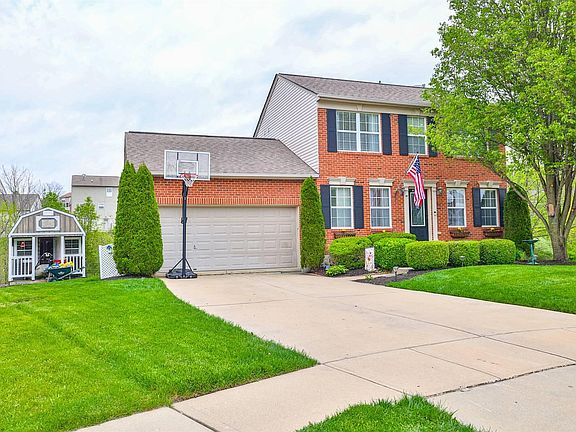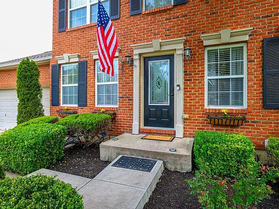 Beautiful brick front 2-story home in Morgan's Crossing. 3 finished levels and loaded with tasteful updates. Enjoy the nicely landscaped yard & attractive exterior curb appeal. Inviting leaded glass front door plus crown molding & coat closet in the entry. Formal dining room boasts overhead fan & crown. Fully equipped kitchen offers LVT flooring, granite counters, tiled backsplash, breakfast bar, & SS appliances. Large living room w/crown molding & ceiling fan. Breakfast room includes fan, crown, & walk out to the newly built composite deck. Primary suite w/ fan, huge walk in closet, & adjoining full bath. 2nd full bath & 2 additional bedrooms w/ fans on the 2nd level. Fully finished lower level includes large family room, walk out, 1/2 bath, & fireplace. Oversized garage leads to convenient mudroom/ 1st level laundry. Neutral decor & updated lighting. Fenced rear yard features breathtaking creek & wooded views, plus a large patio w/ fire pit & hot tub. This home shows beautifully!