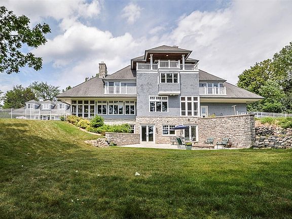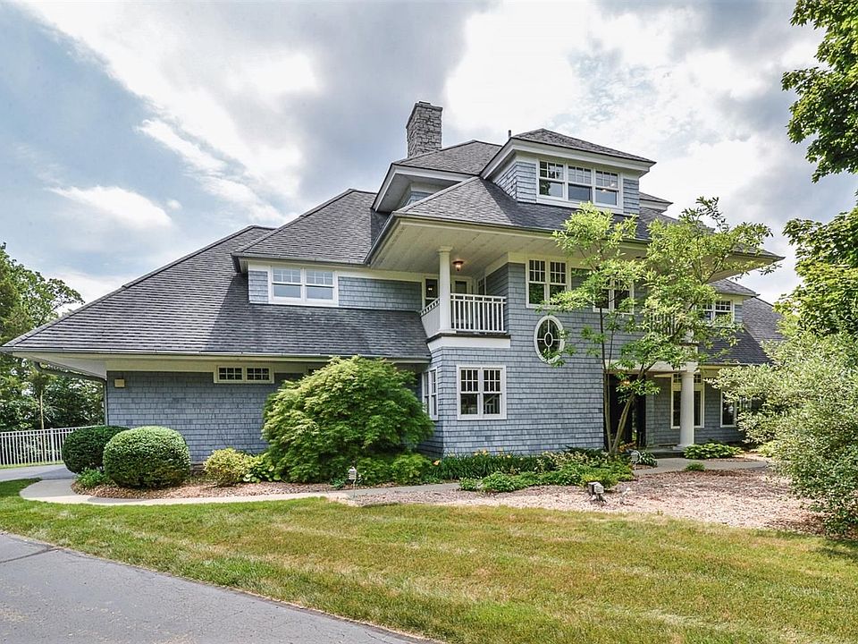 Modern coastal 3-story estate w/ 220' of Huron River frontage on 3.39 acres. Chef's kitchen w/Viking appliances & island w/seating. Refinished Hickory floors on the 1st floor. Panoramic views from family room & dining room. Handicap accessible elevator services all levels. Screened-in porch with fireplace, tile floors, and wood ceilings overlooking the pool and guest house. Generous master suite w/fireplace, walk-in closet and balcony w/ hot tub overlooking the tree tops and river. 2nd level has open loft, 3 bdrs, one ensuite with loft and private balcony plus full bath, 2 additional generous bedrooms one with a loft area/vaulted ceilings, and balcony. Shared Jack and Jill bath w/ private sink areas. Finished w/o LL w/ rec room, theater, study or 5th bdrm, full bath, wine cellar & storage. Guest house w/kitchen, full bath, laundry & 2nd flr bdrm. 1st floor can be used as add'l 2-car garage for 5 garage spaces. Pool w/diving board & hot tub. Many updates include: Geothermal system in 2018, well pump 2016, new water softener 2019, 3 newer water heaters, patio pavers on w/o lower level 2018 , exterior stained, 3 decks replaced, pool resurfaced, tiled & new heater in 2019.