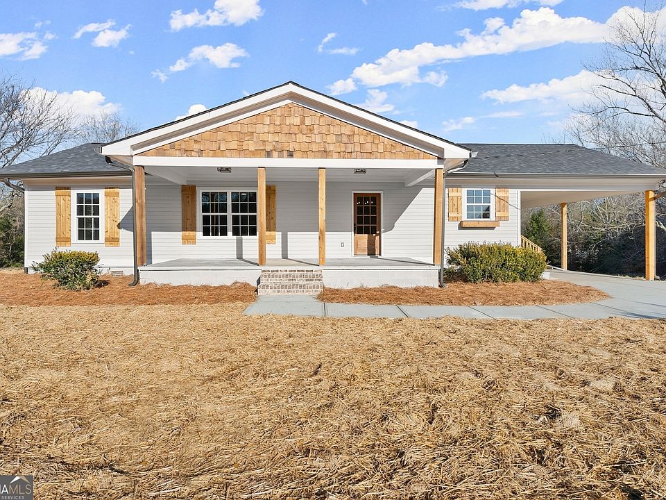 Experience the perfect blend of luxury and comfort in this beautifully renovated home, meticulously re-done by a well known home builder. The chef's kitchen is a true standout, featuring custom cabinetry, gorgeous countertops, and a gas range. Every detail has been thoughtfully designed, from the light fixtures to the newly poured driveway. Nestled on a spacious, level lot, you'll enjoy the tranquility of country living while still being just minutes from town and convenient access to Highway 124. Zoned for the new Heros Elementary School.