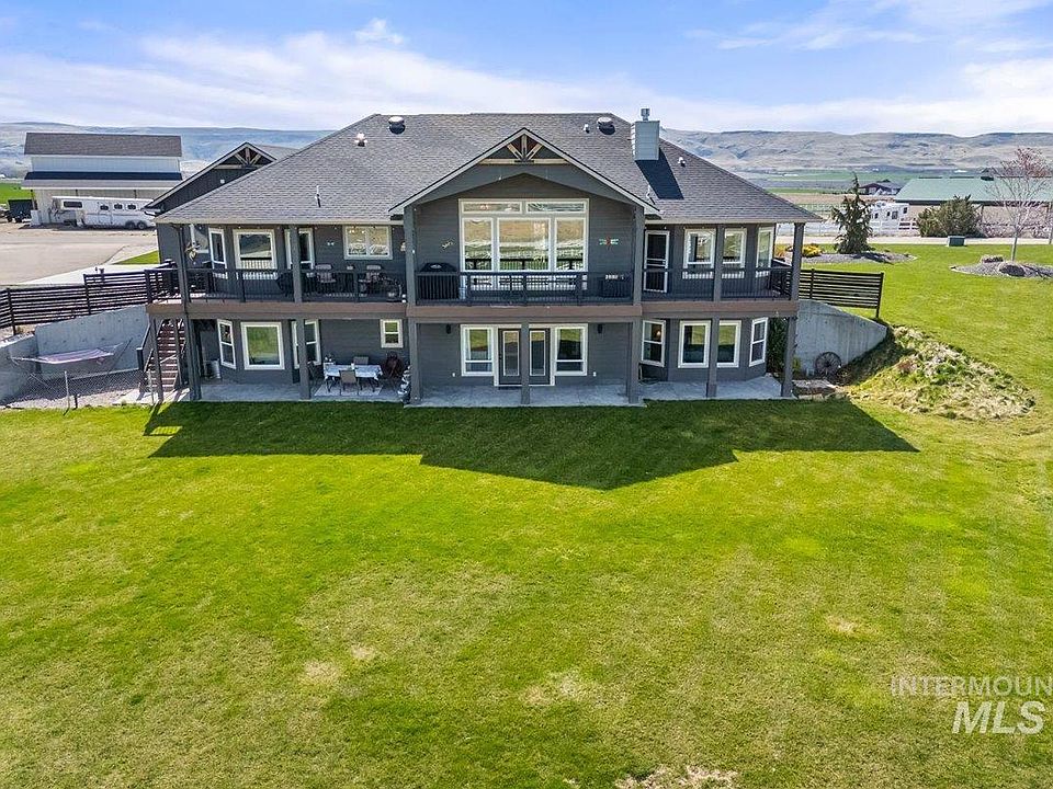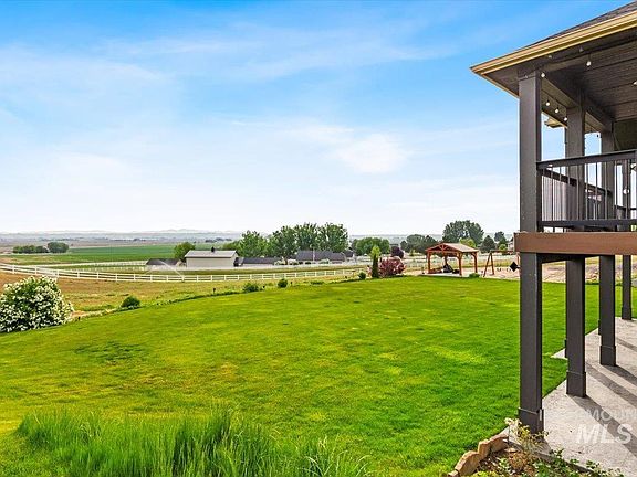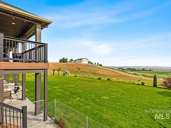 Look at these views! Wake up to stunning sunrises over the valley from your spacious back deck... enjoy morning light from the kitchen, living room & primary suite. End the evening with sunset views of the Owyhee Mountains from your welcoming front porch. You will love this quality custom home on 5.25 acres. Experience peaceful Idaho country living near vineyards, wineries & farmland... just far enough from the city for tranquility but not too far for anything you need. Built with high standards, reclaimed wood accents & thoughtful design, this home is truly one of a kind. The main level 4th bedroom lends itself better as an office w/closet. Walk out basement offers a large flex space for any use such as homeschooling, crafting or business. The sound proof theater comes w/AV equipment, bar & sink. Two bedrooms, a full bath and 2 storage rooms complete the lower level. Ideal for entertaining or small events. Finished shop w/3rd full bath offers ADU potential while the RV garage fits 2 vehicles or an RV. There are 2 registered wells on the property plus affordable irrigation water for the lot. Assumable VA loan. Easy HOA. Minutes from BLM, Jump Creek and the Snake River! This is a beautiful property and we'd love to show it to you~
