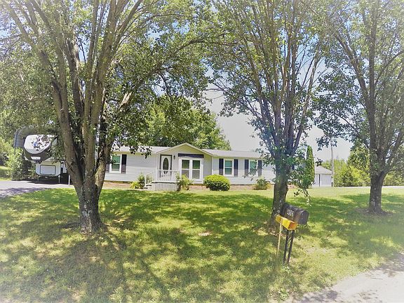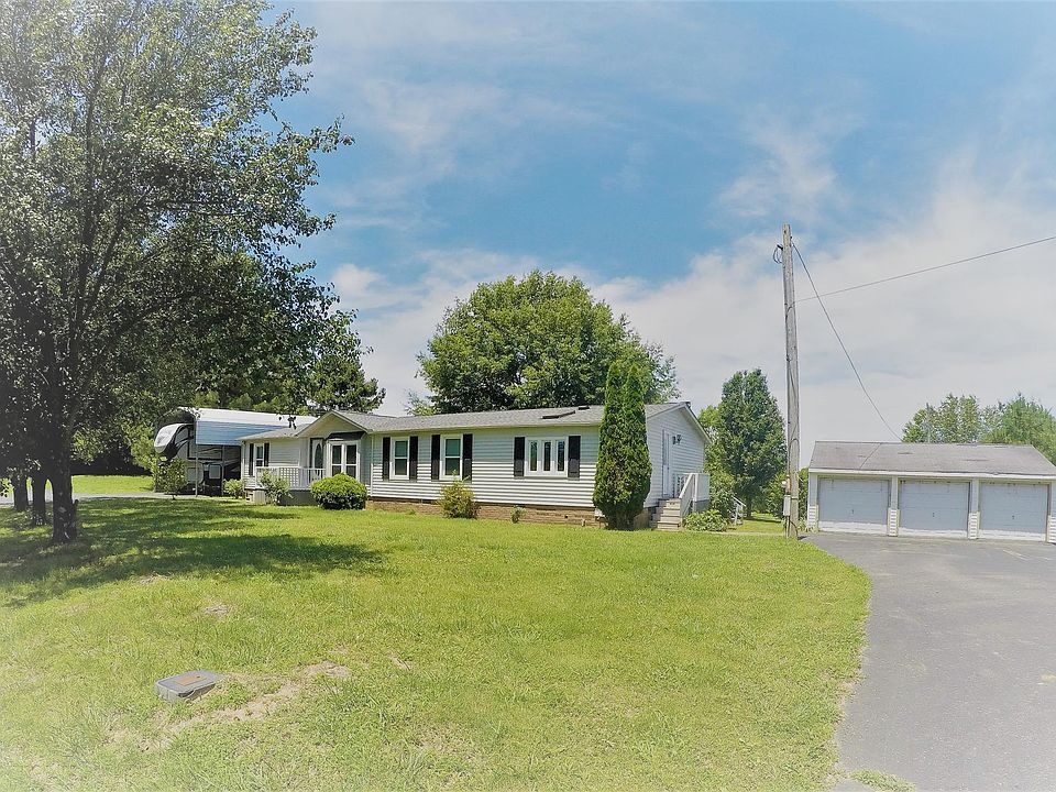 Enjoy the park-like setting of 5 gorgeous, rolling acres. Split bedrooms, large kitchen/dining combo with fireplace, sun room, and master suite with jetted, garden tub and separate shower. Paved drives lead to three-car detached garage and RV parking pad with electrical supply. Roof, siding, windows, doors, gutters, and downspouts all replaced within the last 6 years. Heat pump is only 1-year old. Country setting only minutes from town.