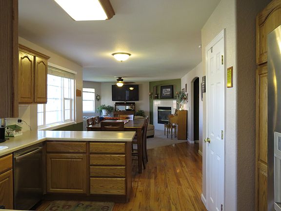 BONUS: 60" TV STAYS! THIS GREAT 2-STORY WITH GREAT NATURAL LIGHT, OPEN LIVING ROOM/DINING ROOM COMBO, KITCHEN COMES WITH DBL OVEN & PANTRY, ALL SS APPLIANCES, EATING SPACE IN THE KITCHEN, LARGE FAMILY ROOM OPEN TO THE KITCHEN HAS COZY FIREPLACE, HARDWOOD FLOORS, LARGE MASTER WITH 5-PIECE BATH COMPLETE WITH JETTED JACUZZI TUB AND LARGE WALK-IN CLOSET, THE TWO NICE SIZED SECONDARY BEDROOMS SHARE A HALL BATH THAT ALSO IS THE LAUNDRY, 3-CAR GARAGE, ON-DEMAND HOT WATER SYSTEM, DOG RUN, UTILITY SHED, GARDEN AREA (SELLER DID THE WORK, YOU GET THE HARVEST!), PEAR & APPLE TREES, GRAPES & RASPBERRIES, FENCED YARD WITH SOME MOUNTAIN VIEWS, SPRINKLER SYSTEM - THIS ONE FEELS LIKE HOME!