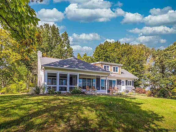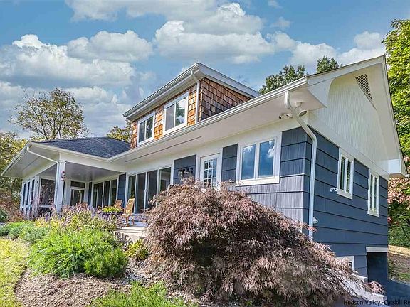 A renovation to match the view: This solid and roomy executive ranch house, lovingly maintained by one family for 30 years, has been completely transformed into a sleek, open and high-design country retreat offering a mesmerizing four-season view of the Shawangunk Ridge and Mohonk Mountain straight across 300+ open acres of picturesque and protected farmland. Set way back from the road by 4.4 acres of mature trees, the house has been gut-renovated by one of the Hudson Valley's premier contractors to open up and elevate every square inch of the structure, including a gourmet kitchen with marble countertops and a first-floor master bedroom suite with an enormous luxury bath worthy of a top boutique hotel. Now open to the cathedral-ceilinged living room, the large kitchen and dining area flow against a retractable wall of sliding windows, taking maximum advantage of the panoramic view and the end-to-end patio outside. There's a also a big screened porch, a den that could be used for additional bedroom space on the first floor, plus 2 more bedrooms and a bath and office upstairs. The walkout basement is currently being finished to the same high standards and will feature a large family room with fireplace and wet bar, 2 bedrooms and an additional full bathroom. All new high-efficiency systems include zoned heating and air conditioning, whole-house water filtration, and digital thermostats and security. Minutes from the farmers markets, hiking trails and state parks that have made Kerhonkson one of the region's hottest towns, this house offers rooms with a view, move-in ready for immediate enjoyment.