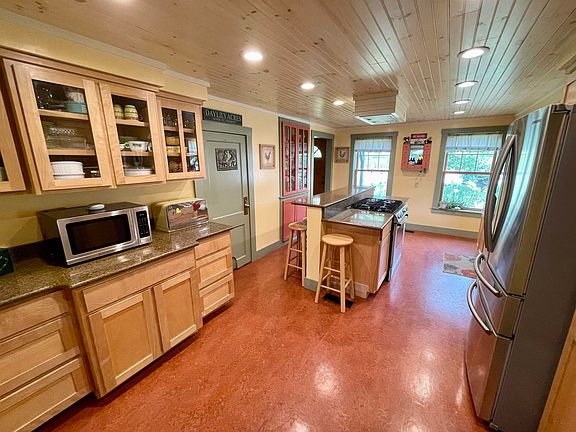 Looking out over the Newbury crossing, this home has lovingly been developed by its current owners. The additions of a living room, dining room, walkout basement and back deck created a cozy dwelling with potential for first floor living and backyard recreation. Live conveniently on the first floor with the primary bedroom, en-suite bathroom and first floor washer and dryer. The kitchen has been outfitted with custom built cabinetry and quartz countertops, and the first floor has new Marvin Integrity windows throughout. Lounge in one of the many sunny rooms, work from home in the office space upstairs, or take over the hobby farm endeavors that this property has already been supporting. Situated conveniently near local farm stands and creature comforts, this property is a gem. Only a short distance from the Newbury Common and the Newbury Village Store, and within commuting range for Hanover, Lebanon, White River Junction, Littleton or Saint Johnsbury. The proximity to the Connecticut River gives access to long days fishing or recreating up and down the river. Convenient garage parking and walk-out basement access to the back yard. This home has been built up and designed to host a number of lifestyles. The basement and attic have both recently been spray-foamed for heating efficiency.
