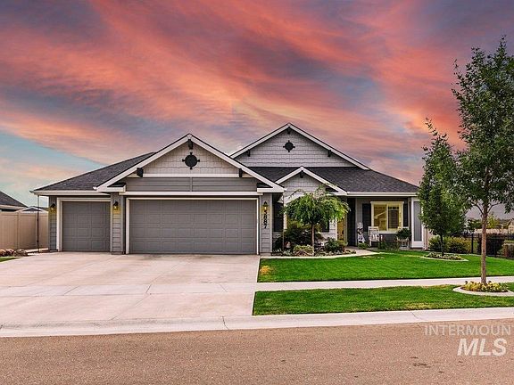 One of the best priced homes on w/ waterfront!!! Stop dreaming we have the perfect home for you! Situated on a spacious lot w/ well manicured greenbelt giving you extra space and an abundance of natural lighting. This home offers 4 spacious bedrooms + flex room (den, office, music room, optional 5th bedroom, or whatever you desire). The great room has a cozy fireplace to enjoy opening to the kitchen & dining room w/ vaulted ceilings. Kitchen has upgraded white cabinetry, oversized island great for entertaining w/ granite countertops & GAS stove. Guest rooms, secondary bathroom, laundry room & interior access to oversized 3 car garage is separate from owner suite. Custom shutters throughout, upgraded flooring, ceiling fans, upgraded fixtures & we can't forget to mention the meticulously landscaped backyard w/ covered patio, waterfall, shed, fire pit & seating area where you will enjoy bird watching & VIEWS of the water, sunsets & mountains. Enjoy community pool, parks & walking paths - LOW taxes & HOA!