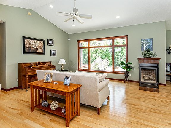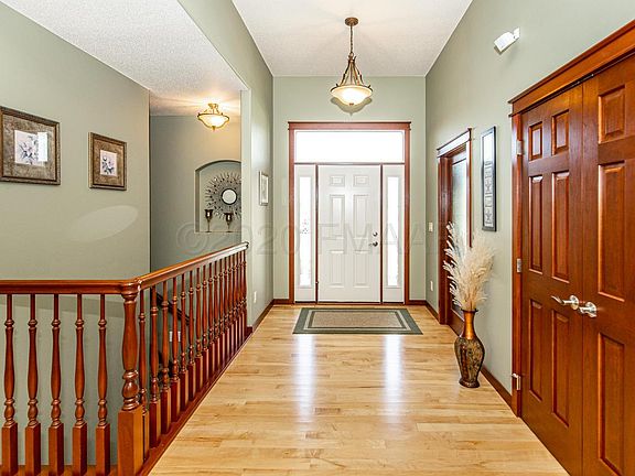 Welcome to this pristine property situated in a cul-de-sac on over a half acre lot with trees and manicured lawn creating a park-like feel. Upon entering, you will be greeted by an open plan offering high ceilings, maple hardwood floors, custom cherry cabinetry, trim & doors. Enjoy the inviting sunroom accessing the stamped patio extending to an elaborate fire pit feature. Master suite includes a walk-in closet, double sinks and tiled walk-in shower. Main floor also offers an office w/desk/cabinetry included. Basement features a large family room w/floor heat, wet bar, recessed lights, speakers, & maple woodwork. Beautiful finished garage features floor heating, storage cabinets, central vacuum canister & an epoxy floor. Outback is a heated shop w/overhead door lending to multiple uses.