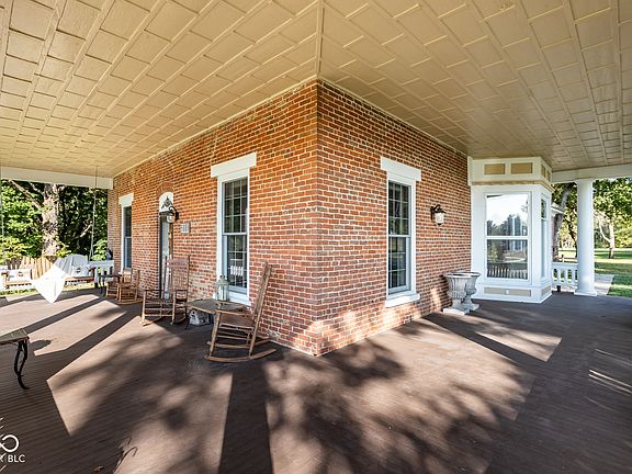 Nestled between expansive farmland on the right and a picturesque woodland and creek teeming with wildlife and nature on the left, this beautifully preserved farmhouse offers an idyllic escape. Thought to be built by Quakers, it boasts unmatched craftsmanship, with 3-brick deep solid interior walls and exposed beams made from whole trees. The home seamlessly blends history with modern updates, featuring a pellet stove, updated electrical systems, new plumbing, and some window replacement. The kitchen showcases a sleek concrete countertop, and the house is equipped with two efficient HVAC units for year-round comfort. A stunning 900 sq. ft. wrap-around porch invites you to relax and enjoy the serene surroundings. The garage, which doubles as an event space or craft sale venue, is outfitted with two additional heating/cooling units, making it perfect for hosting in any season. This dream home has been meticulously maintained, offering both charm and convenience for those seeking a peaceful, nature-filled lifestyle.