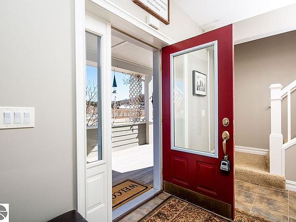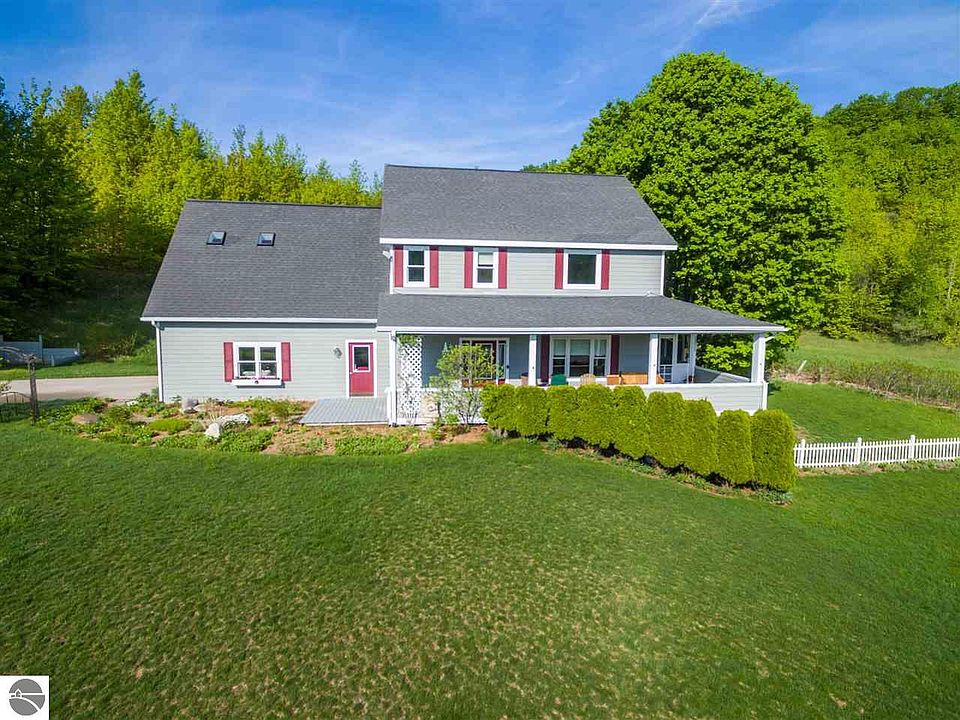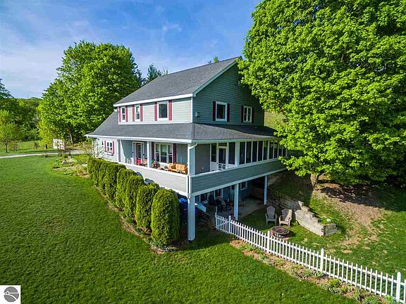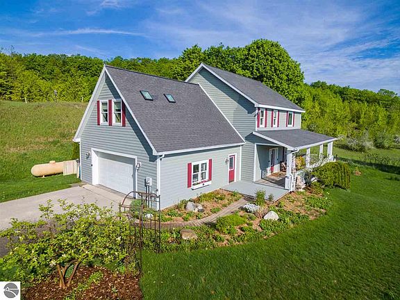 Quality makes all the difference in this energy efficient home with ARXX (ICF) Construction with 12" thick concrete walls to the peaks allowing for low homeowners insurance & utility costs - simply quiet and rock solid. Hardy plank siding, newly painted, Brazilian Mahogany flooring, huge cooks kitchen w/granite tile countertops, custom cabinetry, open floor plan with a soaring ceiling in the living room with a gorgeous fireplace and room to display all your artwork. Walk out to the enclosed North side porch, so cool on those hot summer days, or read on the comfy front porch....or hide in the hot tub in the back yard. Wall to wall windows in the main living area makes you feel like you are outside. Upstairs features a private master suite, laundry, 2 additional bedrooms & bath, with space from the master - this is easy... Lower level walkout has a family room, bedroom/ office + storage galore. Attached, insulated oversized finished garage with hot/cold water. Gardens galore and plenty of parking - this has HOME written all over it - check the photos! All the perks of being 10 minutes to TC but a lovely rural, peaceful setting!
