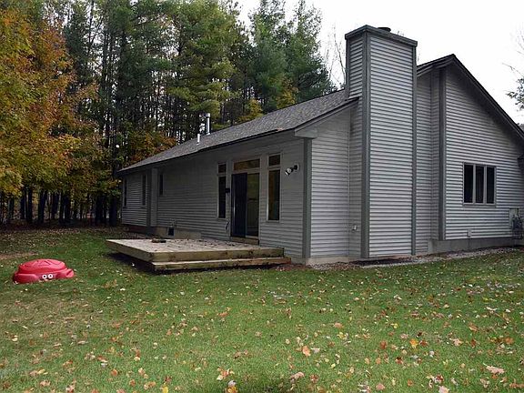 This stylish, three bedroom, 2.5 bath, energy-efficienct ranch is situated on a private, wooded 5-acre parcel and located only five minutes from Traverse City. Quality construction by Silverwood Enterprises--2x6 construction, radiant heat (heated wood and ceramic flooring), cathedral ceilings, open floor plan, wood burning fireplace and private main floor master suite. Lower level finished in 2012 including family room and bathroom. Lovely landscaping; close to golf courses, restaurants, shopping, as well as Crystal Mountain Resort and Interlochen Arts Academy.