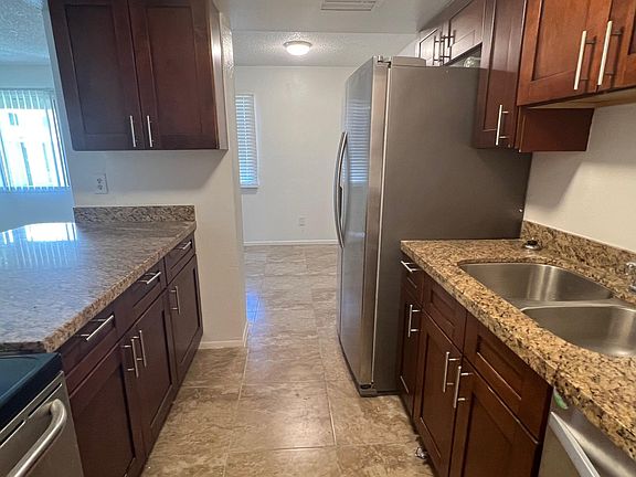 This 2 bed 1 bath townhome is move-in ready. It is updated throughout, with fresh paint, new carpet, and granite countertops. The kitchen includes a breakfast bar, stainless steel appliances, and a Kitchen pantry. Outdoor front patio area with storage and carport for parking. Very clean with access to community pool. Apply now before its gone No smokng, No pets.