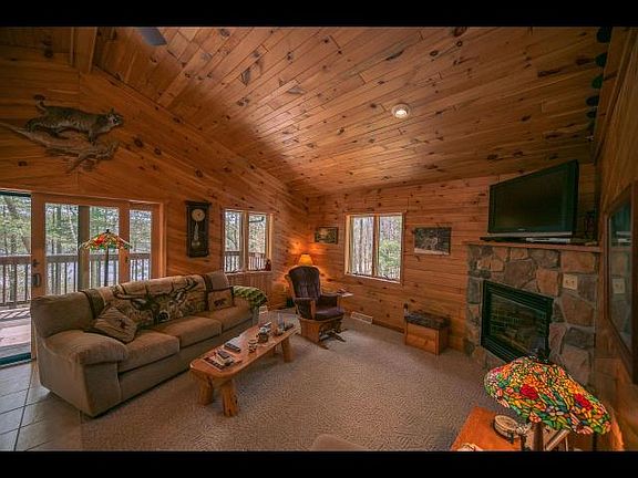 Immaculately maintained 2 bedroom 1 bath log sided home on Lake Mary. Comfortable living room/kitchen/dining with cathedral ceiling, gas fireplace, and a wonderful view of Lake Mary providing the ambiance. 2 bedrooms and a full bathroom complete the first floor layout. The unfinished walkout basement has high ceilings, rough-in plumbing to add a future bathroom, and plenty of space to add bedroom and sitting room. You'll appreciate the blacktop driveway and the two car detached garage for storage. Close to town (5 miles from Eagle River and 7 miles from St. Germain) ATV and snowmobile trails accessible from the property, and close proximity to many other great lakes for fishing and boating activities. Lake Mary is a small, no wake lake offering a quiet and peaceful setting.