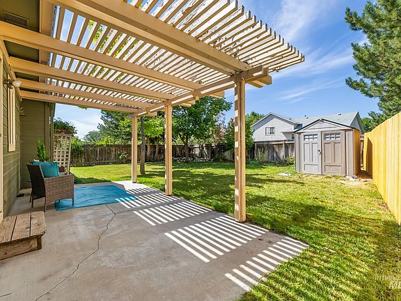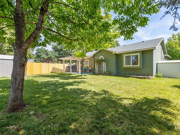 Columbia Village gem, this single level home offers an excellent location & highly sought after school district. The large corner lot offers a fully fenced yard w/ mature trees & landscaping, & plenty of privacy. The great room design lives large & is flooded with light from oversized windows, & soaring vaulted ceilings. The open floor plan includes a sliding glass door leading to a large back yard & pergola covered patio. The primary suite features a spacious walk-in closet & ensuite bath, offering plenty of elbow room. This move-in ready home features built-in shelving & window seats offering added charm & interest, plus offering excellent storage with two storage sheds & plenty of cabinetry. HOA amenities include a clubhouse & recreation center, pool, tennis courts, volleyball courts & disc golf. Immediate access to walking paths, & within walking distance of schools & Simplot Sports complex. Easy access to downtown, the freeway, shopping and restaurants.