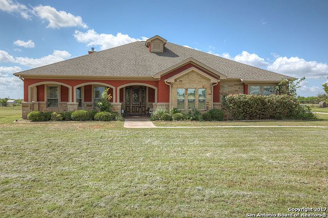 This is an incredible home on 8.68 acres in Marion. Property is fenced and cross fenced with electric gate so bring your horses. There is a 4 stall horse barn with a 1/1 renovated but unfinished apartment space attached to it. There is also a huge dog run with kennels. Attic space upstairs could easily be converted to a 4th bedroom. Property is Ag exempt, Marion ISD but close to town. This home has it all. The exterior has San Saba Stone & Stucco, and a recently added 26 X 8 concrete patio off of the back p