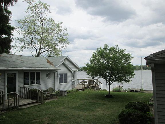 Beautiful lake frontage on Palmer Lake. South side location allows for sunrise as well as sunsets. 3 bedroom, 2 bath bungalow has been totally updated. Open kitchen. This lake retreat is so close to lake you can fish from the deck. Over 100ft of frontage located mid-lake--. Next to home is a huge 38x30 party building. 1100 sq. ft. of heated living and relaxing space. Cabin feel interior with vaulted ceilings and lots of windows overlooking 12x40 lake side patio.