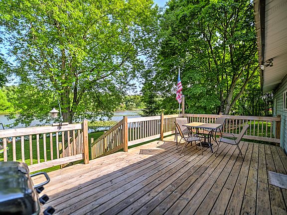 Outstanding WATERFRONTAGE on the St. Joseph River- Stump Bay is what this area is called and if offers Calm and Serene water and nature at it's finest!- paddle under the bridge to Noah Lake. This updated Home offers newer metal roof, updated kitchen, beautiful deck off the riverfront living room, fresh and bright paint throughout, gorgeous pellet stove that could heat the entire house, three sheds, fenced in yard and a dock! Stump Bay is where the Eagles Fly and you can live your best life enjoying all the St. Joseph River has to offer- get your ''Sieur LaSalle'' on and explore the area!