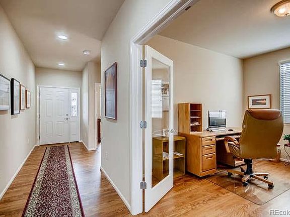 You'll love this updated maintenance-free patio home nestled in a quiet location with open space backyard views! HOA takes care of everything ~ all mowing, snow removal to your front door, and exterior maintenance. Enjoy a functional, light-filled floor plan with beautiful newly installed red oak hardwood floors that flows throughout the main level. The updated kitchen provides plenty of rich cherry wood cabinetry, sleek granite countertops with a large eat-in island, stainless steel appliances, and modern travertine subway tile backsplash. The main level includes two generously-sized bedrooms, including the luxurious master retreat with an opulent 5-piece bath - a perfect haven to unwind after a long day. Journey downstairs to find a spacious and cozy family room, additional bedroom and bath, making it a perfect spot for guests' privacy or a fun teen retreat. Retreat to the lovely backyard and enjoy a cup of coffee on your private deck and take in the peaceful and stunning scenery. With great location near local award-winning schools, parks, Castle Pines walking trails, and quick access to Castle Rock's trendy shops and restaurants, this charming patio home won't last long!