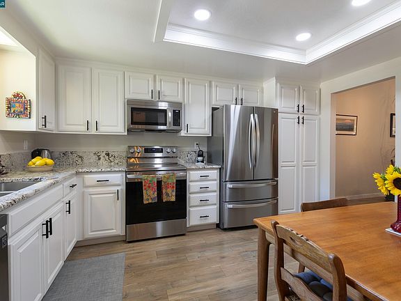 Beautiful, spacious townhome in sought after Bancroft Village! Gorgeous remodeled kitchen with modern cabinets and lighting, granite countertops, and stainless steel appliances. Generously sized living room and primary bedroom boast vaulted ceilings and recessed lighting, and both access the serene back yard with shaded patio and lovely landscaped garden. From your back gate it’s a short stroll to a gated entrance to beautiful Heather Farm Park. Walk or bike to the Iron Horse Trail, or Countrywood Shopping Center for coffee, restaurants, and shopping. Great commute location near Bart, 680 and 24. Enjoy everything the community has to offer including two pools, tennis courts, and club house. Turnkey property with all the amenities for an enjoyable lifestyle!