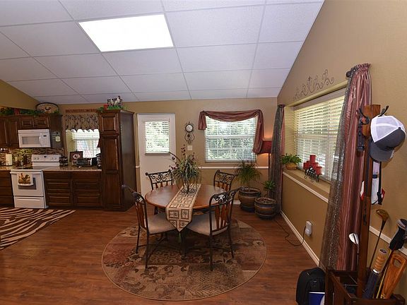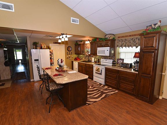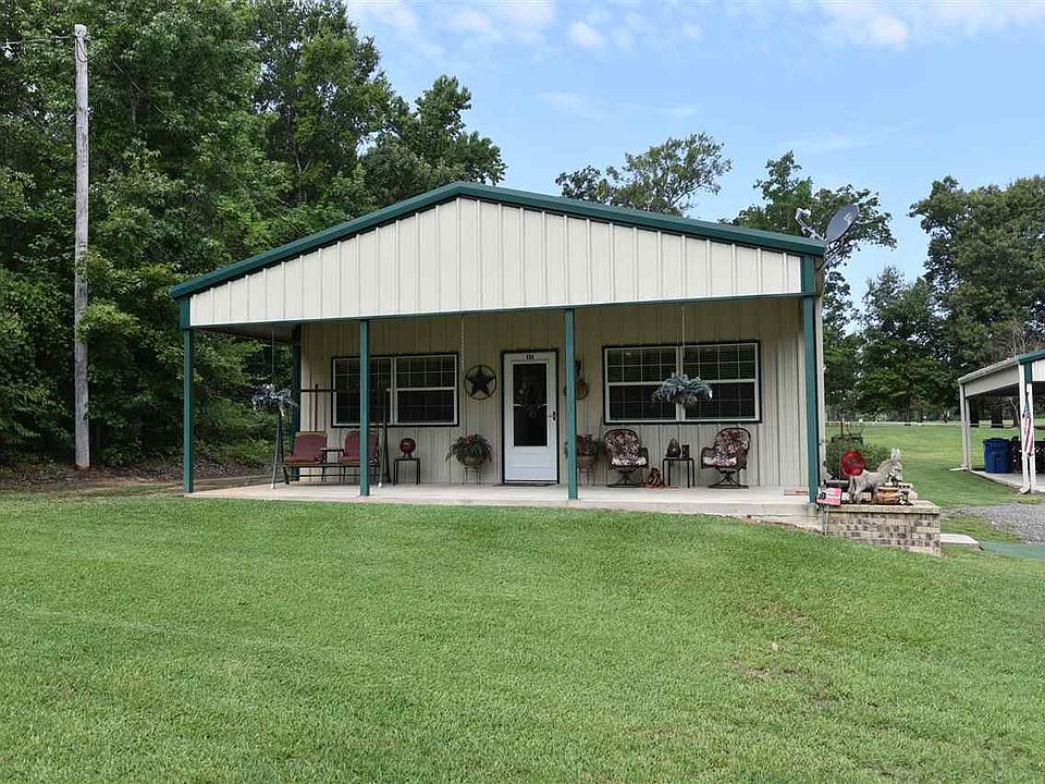 Check out this Metal home on the 12th fairway of Longview Country Club. 2 Bedrooms and 1 bath. This could also be configured as a 1 bedroom with two large living areas. All new cabinets and Granite countertops. Island cabinets with granite top. Vinyl Plank wood look flooring though out this very efficient home. Covered front and back porches. Small fenced in area in the backyard. 2 car caport has attached workshop that has a roll up door perfect for a golf cart.