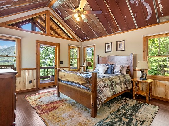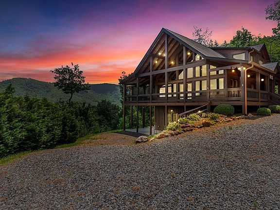 Love Where You Live in the Aska Adventure Area! Introducing a stunning 3bdrm / 3.5 bath modern rustic cabin with year-round Mountain View's. This beautifully designed home features an open concept layout with a wall of windows from floor to ceiling, allowing natural light to flood the space & provide breathtaking views of the surrounding mountains. The Kitchen boasts granite countertops, custom cabinets & stainless steel appliances. It's the perfect space for preparing delicious meals for your family. The second floor ensuite is a true oasis, complete with a private balcony overlooking the majestic mountains and a large bathroom featuring a walk-in tile shower & soaking tub. It's a perfect retreat after a long day of outdoor adventures. The main floor ensuite leads out onto the screened-in porch that features a custom-made swinging bed & wood-burning fireplace creating a cozy ambiance on cooler evenings. The Finished terrace level offers additional space with a rec/media room, wet bar, bedroom & full bath. Sold mostly furnished -including a $10k+ whole house generator. This mountain retreat offers a circle driveway allowing ample parking & large space for outdoor entertaining, making it ideal for hosting gatherings & creating lasting memories. With its proximity to downtown Blue Ridge, the Toccoa River and Blue Ridge Lake, you'll have easy access to a variety of recreational activities & amenities. If your dream is to love where you live, then this mountain retreat is the one for you. Don't miss out on the opportunity to own this exceptional property & experience the beauty & tranquility of mountain living at its finest.
