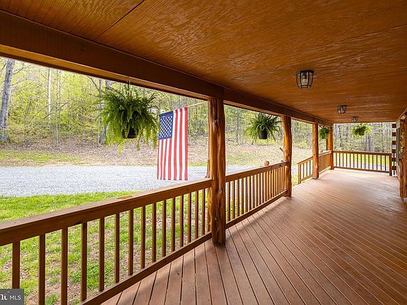 Immaculate 3BR/2BA Log home tucked away in the woods on 3 acres. So much charm and detail throughout with beamed ceilings and walls. Beautiful large living room with vaulted ceilings. Country eat-in kitchen with beautiful cabinets and lots of counterspace. Main level laundry room off of the kitchen. Primary bedroom w/ walk-in closet and private full bath. Bedrooms are spacious. Full basement with windows and natural light. Huge game room with pool table and tons of space for recreation or perhaps a home gym. Oversized family room w/ a flue for a stove or fireplace. Nice walk out basement to a beautiful level private backyard. Large rear deck for grilling and relaxing. Full front porch to enjoy peace and quiet. Conveniently located to Rt 15 or Rt 29. Move in ready waiting for you.